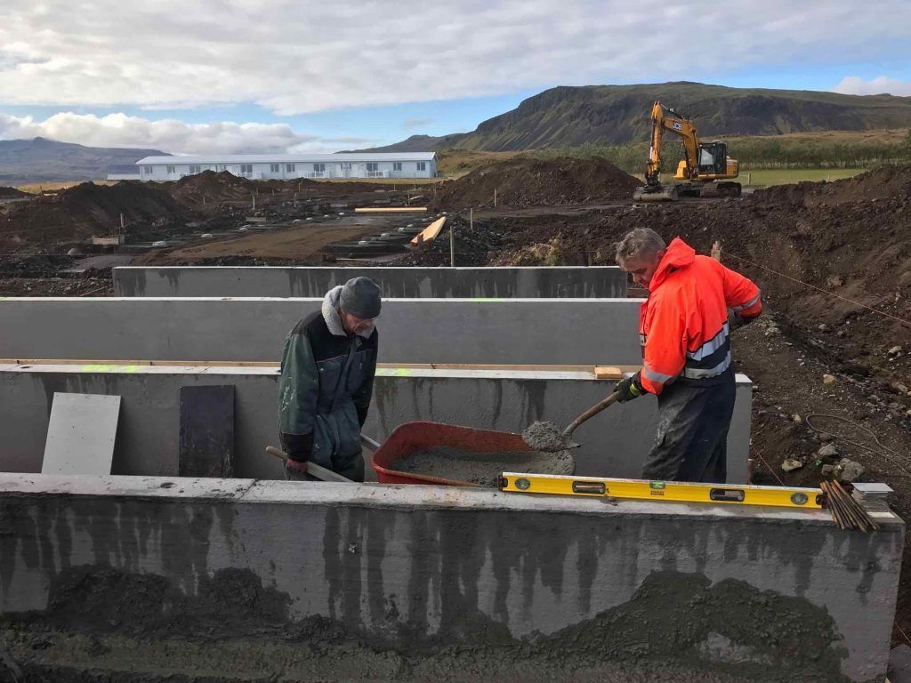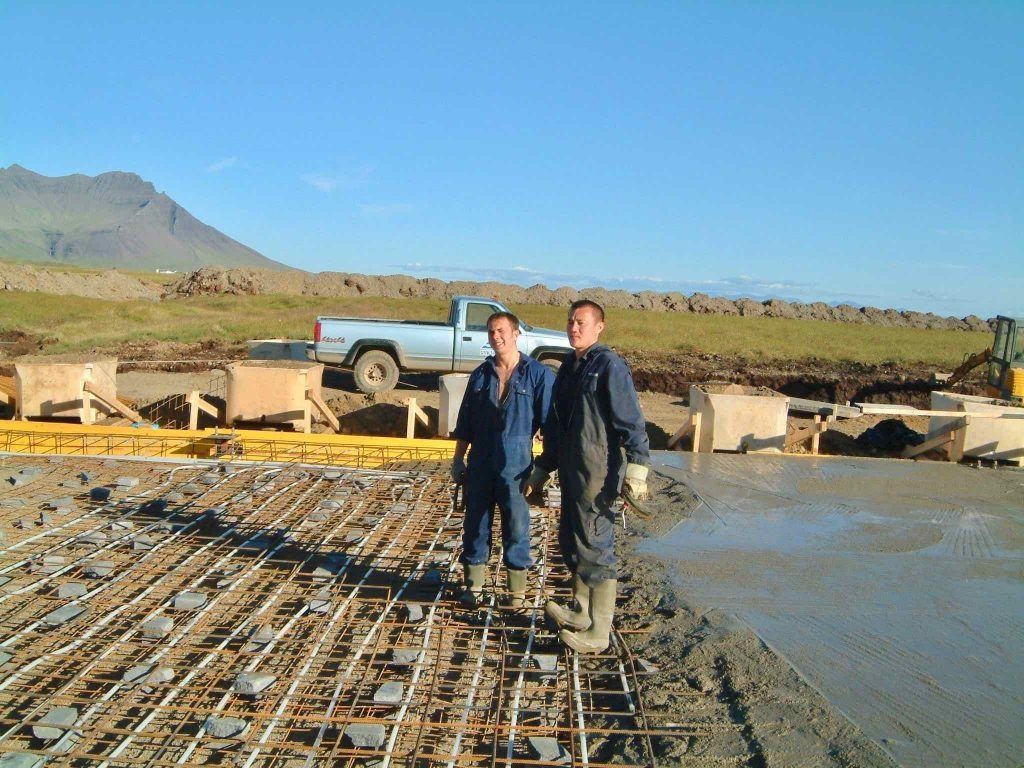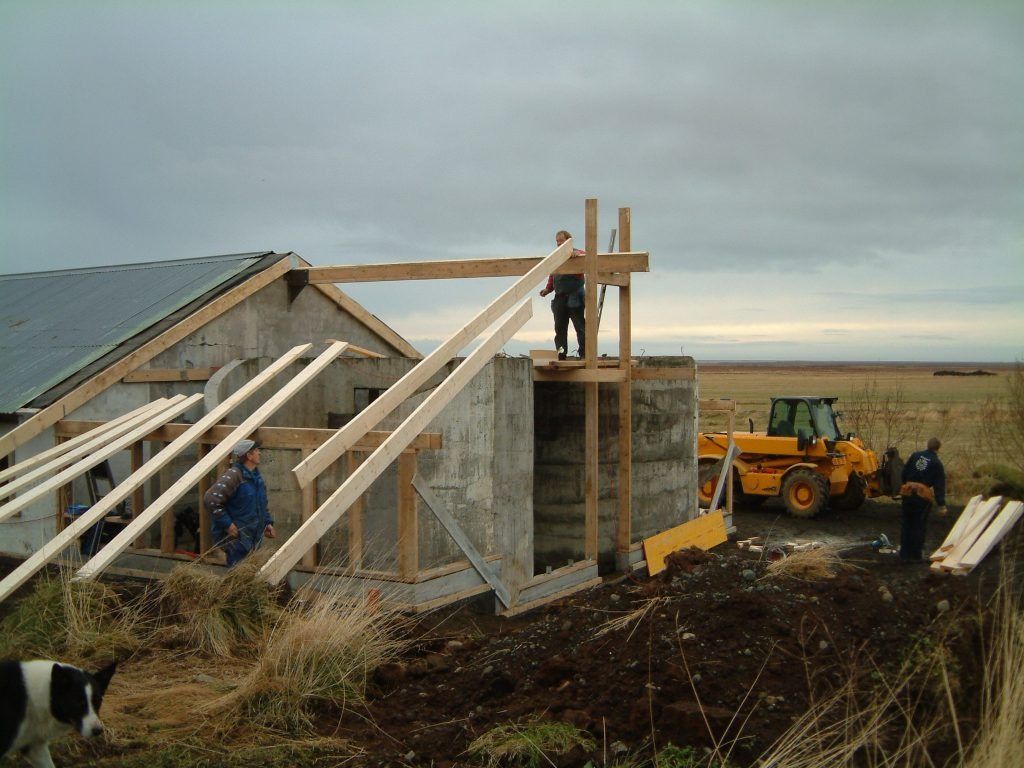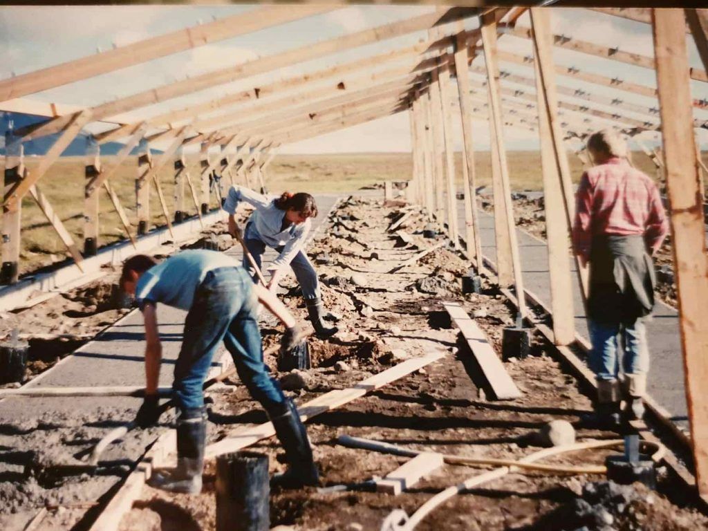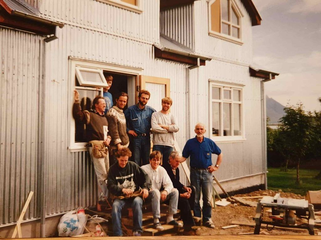 Byggingarflokkur Guðmundar og Önnu við stækkun á ferðaþjónustu þeirra 1990.