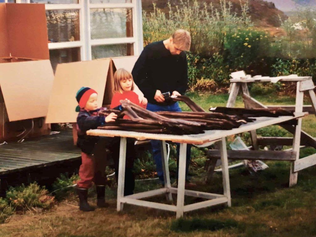 In 1988, Bryndís and her husband Sigurður moved to Miðhraun, a sheep farm in the family for six generations since 1850, to follow their dream of countryside life. Over the years, they tried many ventures, the most successful being a fish-drying company that employed 40 people from 1997 until 2016, ending when the factory burned down.