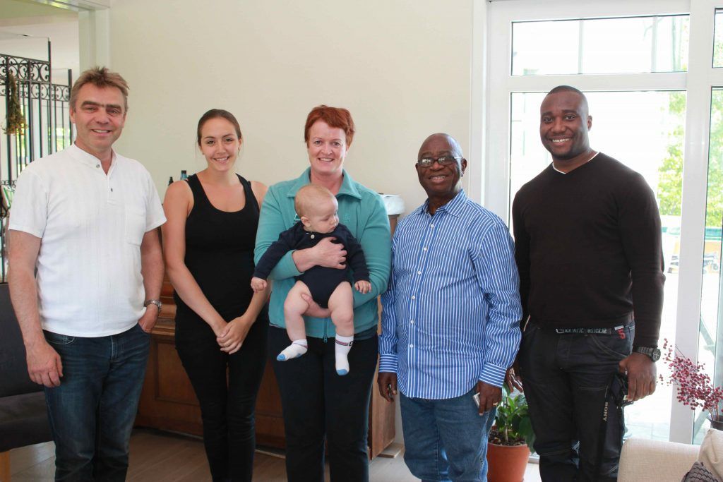 ButtonSigurður, Anna, Sigurður yngri, Kata (Salka fiksmiðlun) og kaupendur frá Nígeríu Zinkata og sonur hans.