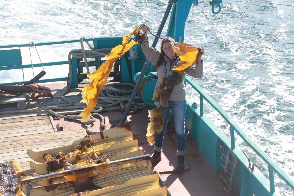 ButtonSteinunn og ný þurrkað þang sem kindurnar okkar hafa fengið að njóta góðs af.