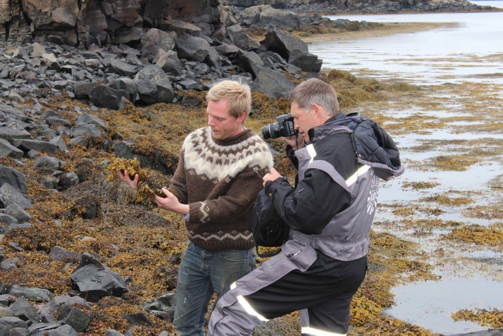 ButtonIngvar og Colin skoða þang í Breiðafirðinum.
