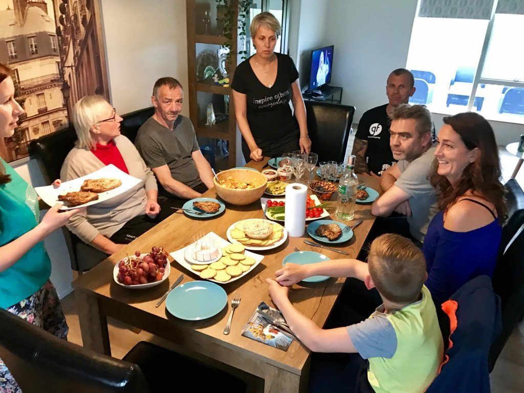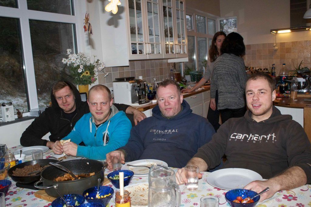 ButtonHádegismatur á Miðhrauni sumarið 2017. Verktakar sem voru um stund hjá okkur við endurnýjun á starfsmannahúsum sem í dag eru notuð í ferðaþjónustuna.