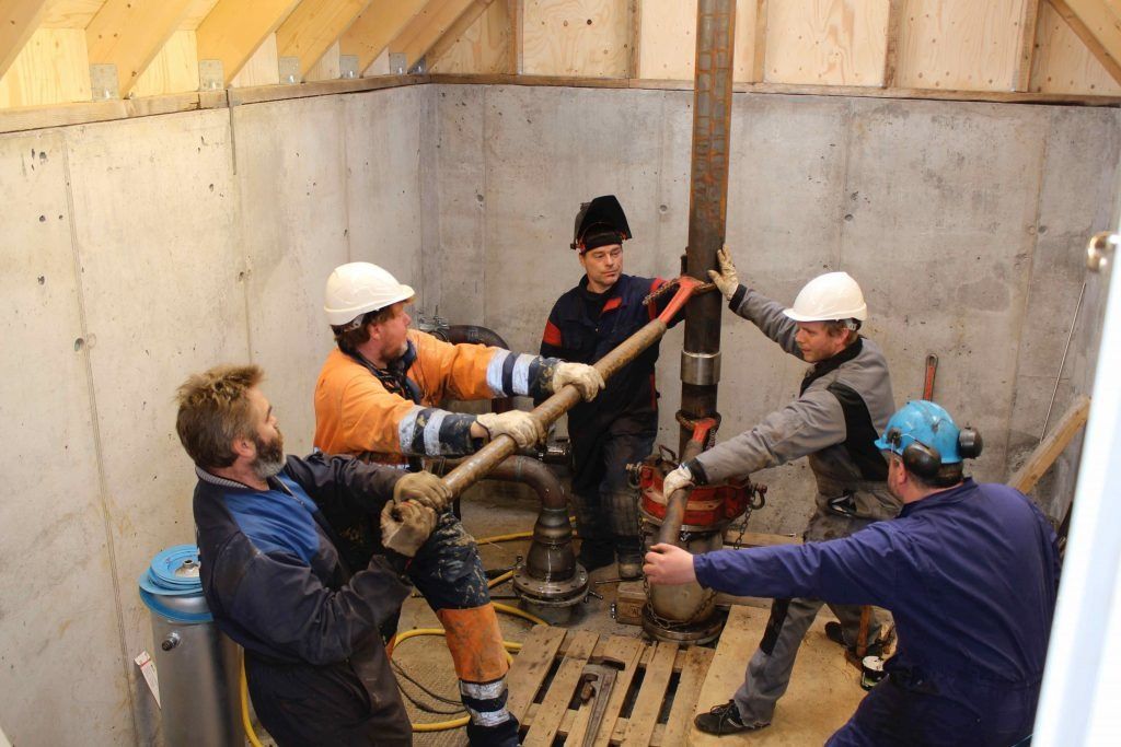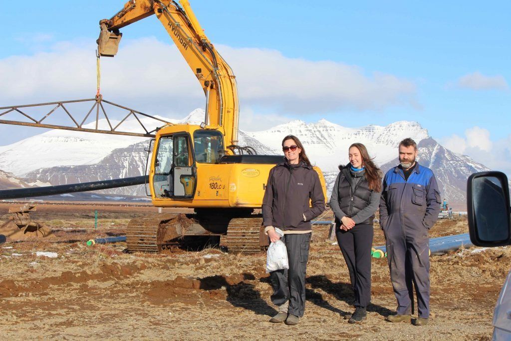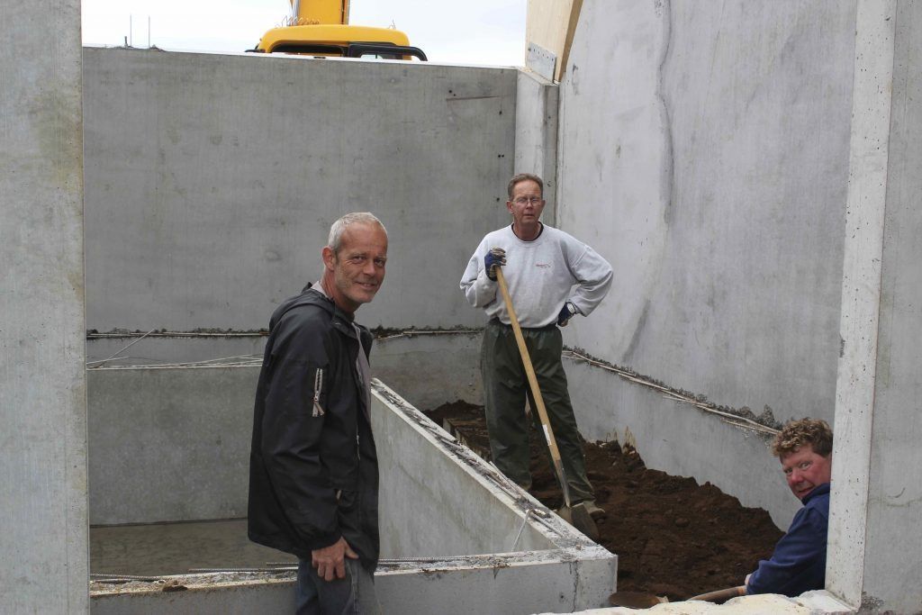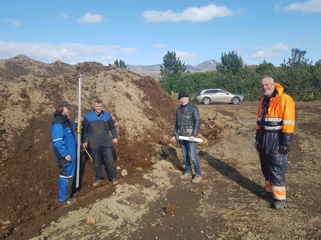 ButtonHilmar, Agnar og Sigurður við grunn eftirþurrkuninar.