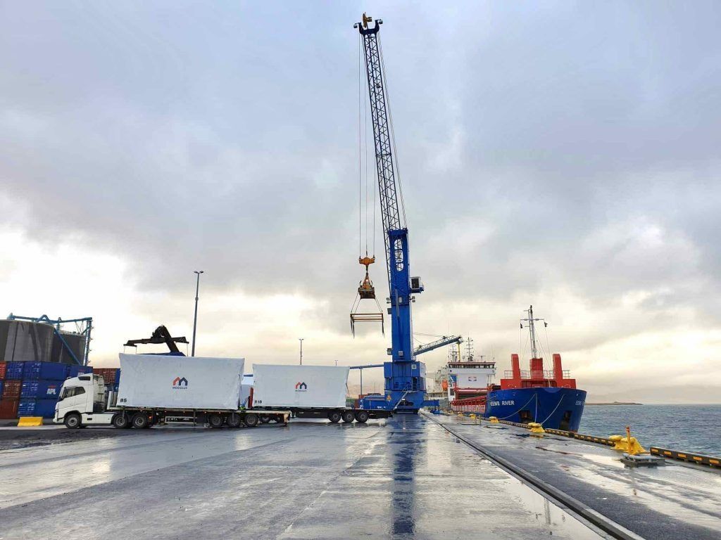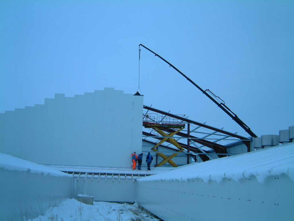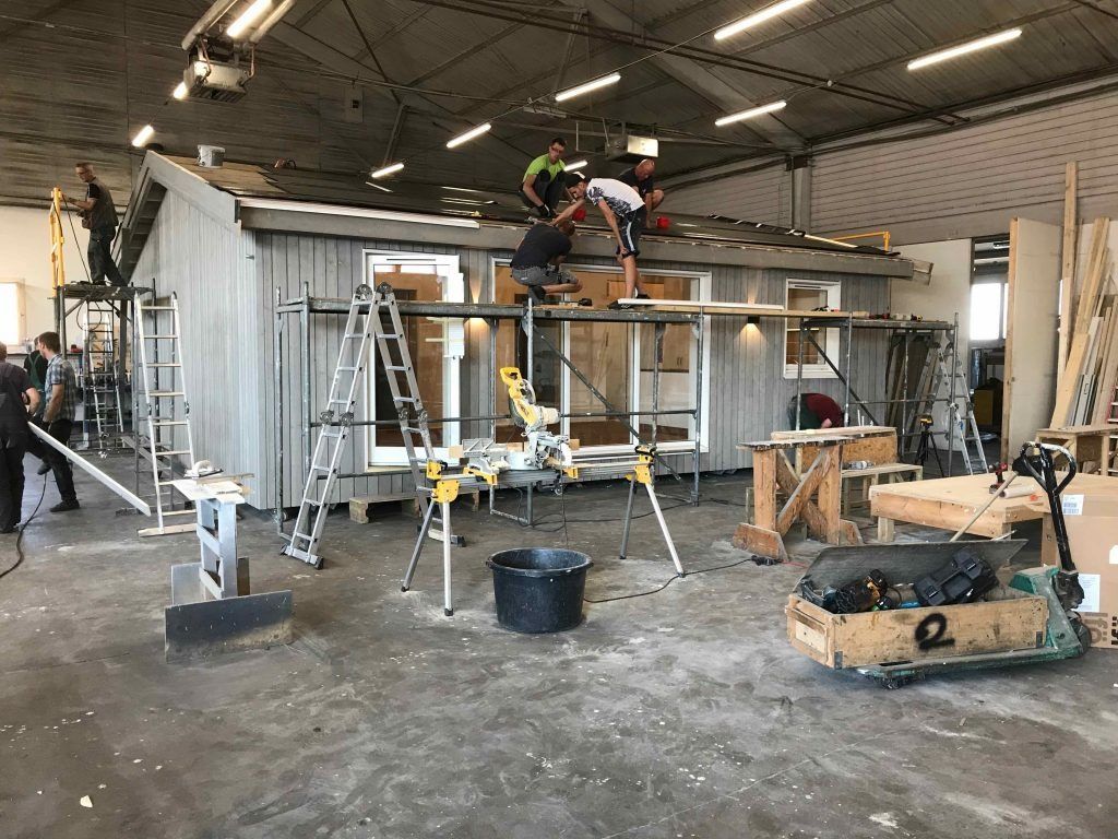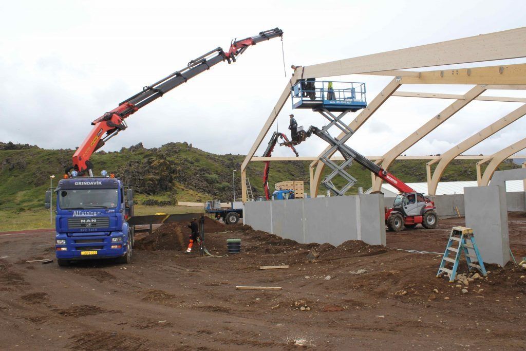 ButtonHúsin í byggingu út í Letlandi.