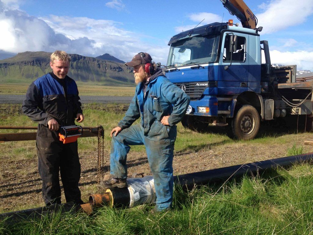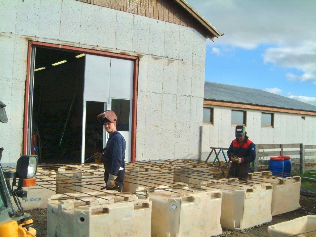 ButtonVíðir og Ingvar setja upp öryggishlið við vinnslu.