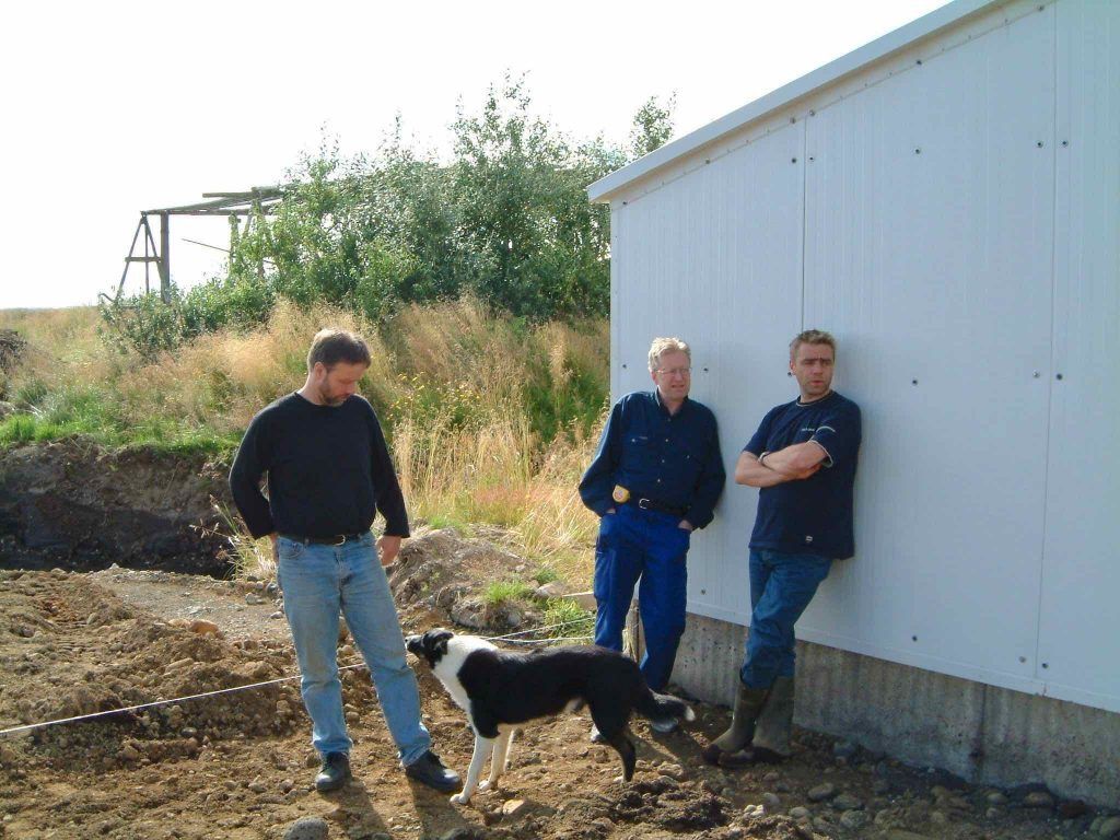 Loðdýraskálarnir byggðir 1988 Sveinbjörn, Bryndís og Egill frá Dal.
