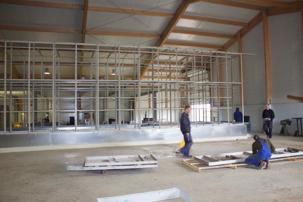 Sveinbjörn bróðir smíðaði stálgrindina í eftirþurrkunarhúsið ásamt fleirum.