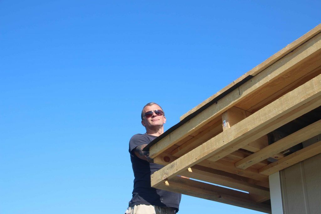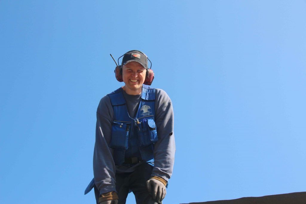 ButtonGunni hefur starfað hjá okkur síðan 2009 og er liðtækur í allt. Hér er hann að setja nýtt þak á húsið á Lynghaga.