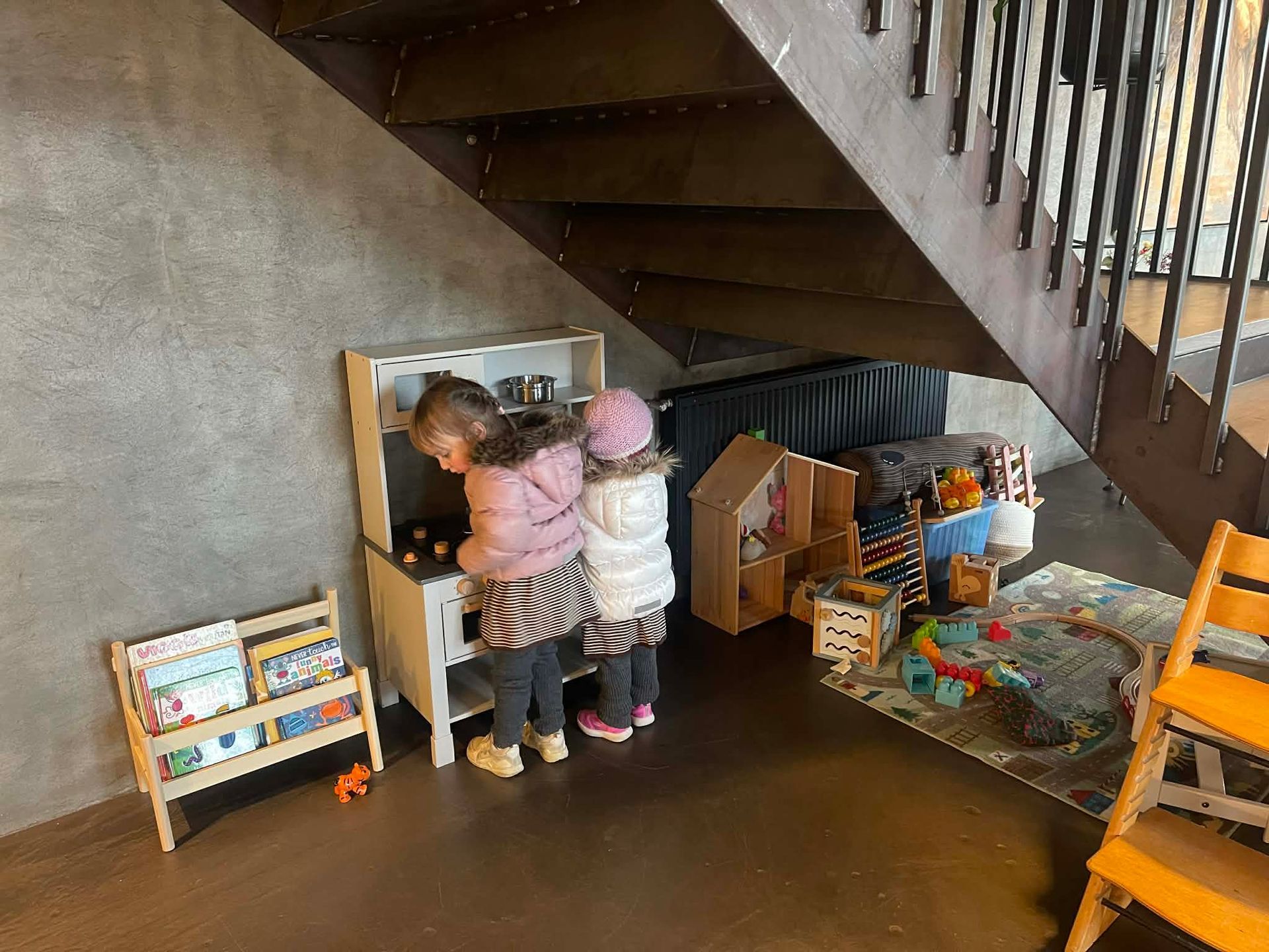 The restaurant is family-friendly and features a welcoming play area for kids. The kids' menu focuses on serving wholesome food