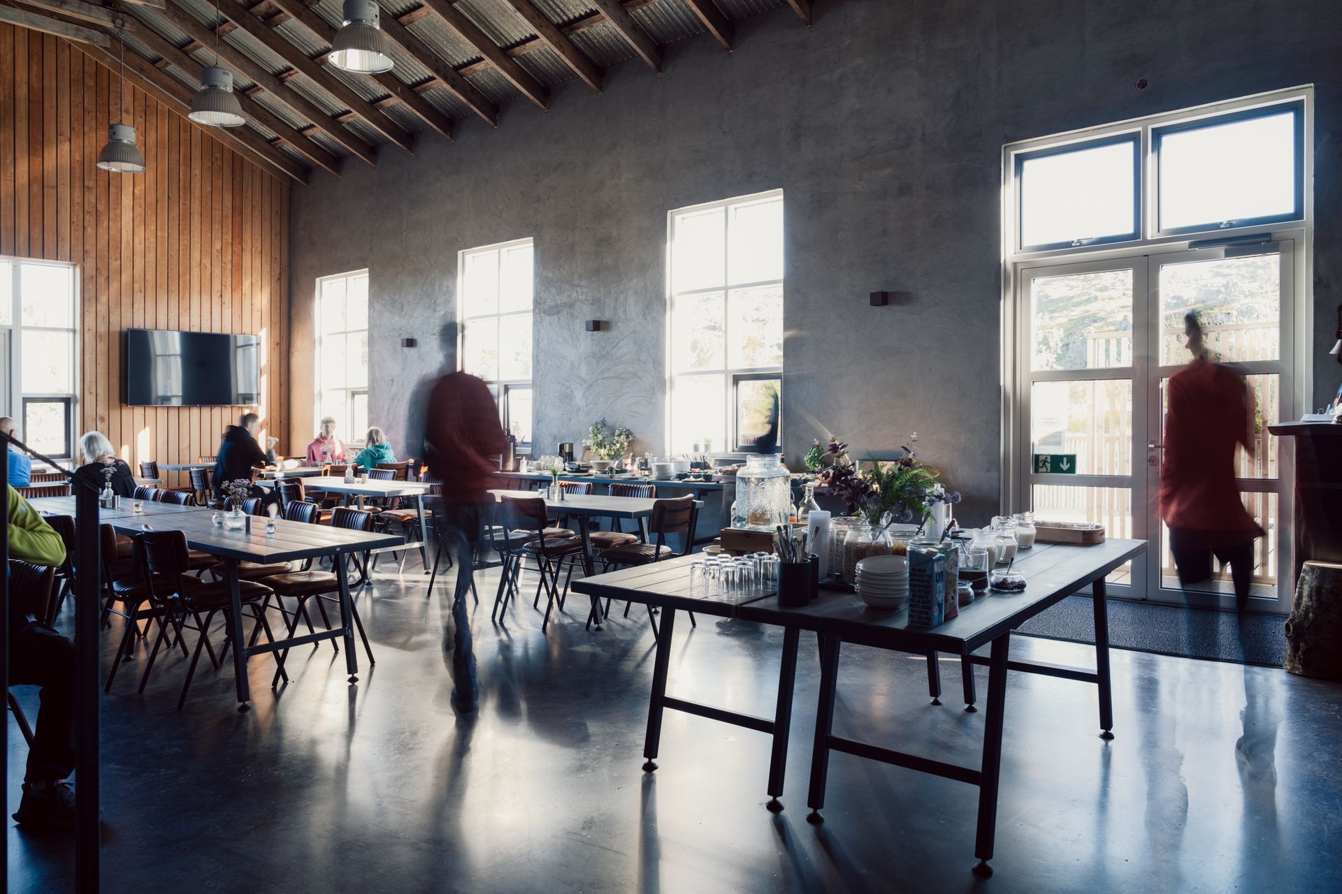 Our breakfast buffet offers a selection of freshly baked breads, toppings, Icelandic dairy products, cereals, porridge, fresh fruits and vegetables, and hot and cold dishes like eggs, bacon, and sausages